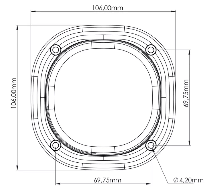 - Model TYRI 1010 Flush nie ma kołnierzy chłodzących i musi być montowany bezpośrednio na powierzchni pojazdu, gdzie metal maszyny jest używany do tworzenia efektu chłodzenia dla diod elektroluminescencyjnych.