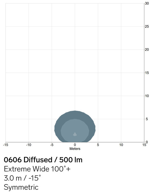 TYRI 0606 Diffused mają wbudowane obwody czujników temperatury, które zmniejszają moc wyjściową, aby regulować temperaturę światła. Zapobiega to uszkodzeniom diod LED, które mogłyby ulec przedwczesnej awarii.